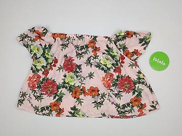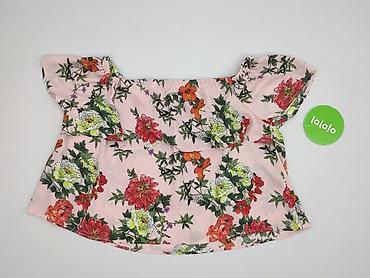 Bluzka damska House, rozmiar S/XS - Kolor: jasny róż - Wzór: tropikalny/roślinny – liście i kwiaty w odcieniach zieleni, beżu i bieli - Krój: prosty, lekko luźny - Rękaw: krótki z delikatnym marsz...