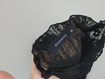 Bluzka damska RESERVED, rozmiar S - Kolor: czarny - Materiał: lekka, półtransparentna siateczka/koronka z pionowymi pasami i delikatnym, kwiatowym wzorem - Krój: prosty, lekko luźny - Rękaw: krótk...