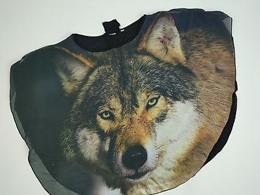 - Przód: efektowny, fotorealistyczny nadruk głowy wilka na lekkiej, półtransparentnej warstwie