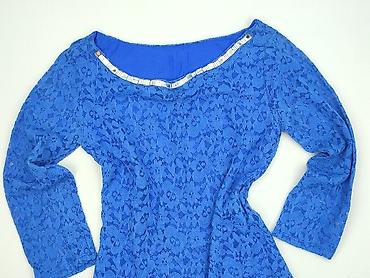 Uniwersalna, elegancka bluzka idealna na wyjścia, do spódnicy lub spodni. Dla kobiety, rozmiar niewskazany na metce – proszę kierować się krojem dopasowanym i elastycznością materiału. Kolor intensywny kobalt, koronkowy wzór w kwiaty.