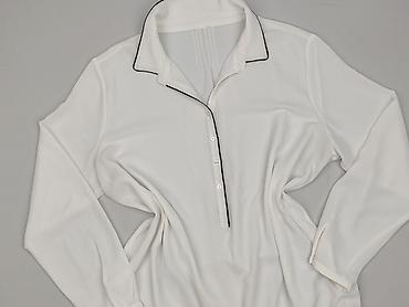 Biała damska bluzka Made in Italy, rozmiar M - Fason: luźny, lekko wydłużony tył (zaokrąglone wykończenie dołu), długi rękaw z szerokim mankietem - Kołnierzyk: klasyczny, ozdobiony subtelną lamówk...