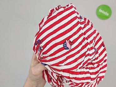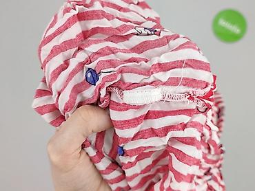 Bluzka damska w czerwono-białe pasy - Fason: luźny, prosty krój z krótkim rękawem - Dekolt: zaokrąglony z ozdobną patką zapinaną na trzy guziki przy lewej stronie - Wzór: poziome pasy; górna część...