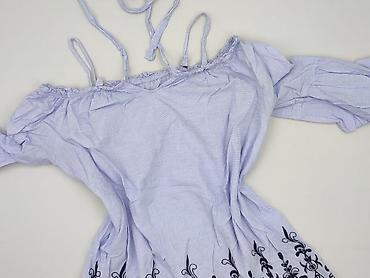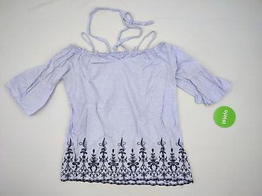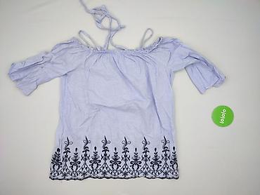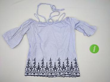 Bluzka damska w paski, hiszpanka - Krój: hiszpanka z odkrytymi ramionami, luźna, prosta linia - Wzór: wąskie, pionowe paski w kolorze kobaltowym na białym tle - Dekolt: elastyczna gumka pozwalając...