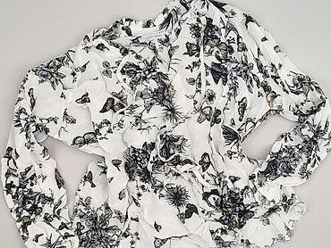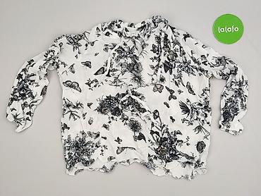 Bluzka damska z motywem motyli - Krój: luźna koszulowa bluzka z krótkim rękawem - Dekolt: w kształcie litery V, zapinana na guziki z przodu - Detale: elastyczne, marszczone wstawki (smocking) na w...