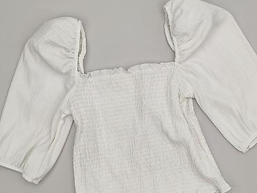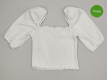 Biała bluzka damska z marszczonej tkaniny (smok) z bufiastymi rękawami 3/4.