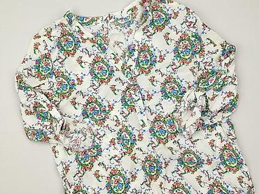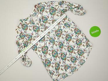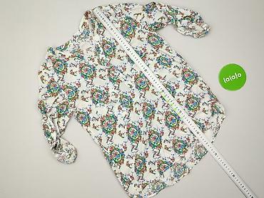 Damska koszula w kwiatowy wzór - Materiał: cienka, lekka tkanina (przewiewna, miękko układająca się) - Kolor bazowy: jasny błękit; wielobarwny nadruk kwiatowo‑ornamentalny (odcienie zieleni, żółci...