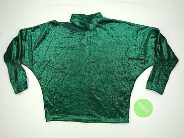 Bluzka damska z połyskiem, długi rękaw - Kolor: ciemna zieleń z metaliczną, drobną nitką (efekt delikatnego połysku) - Krój: lekko luźny, z marszczeniem z przodu i dekoltem w serek - Ozdoby: piono...