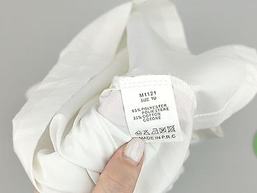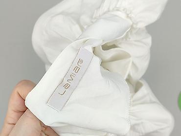 Biała damska bluzka Made in Italy, rozmiar M - Fason: luźny, lekko wydłużony tył (zaokrąglone wykończenie dołu), długi rękaw z szerokim mankietem - Kołnierzyk: klasyczny, ozdobiony subtelną lamówk...