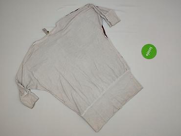 Bluzka damska z długim rękawem, rozmiar XL. - Kolor: jasnoszary melanż z bordowym, kwiatowym nadrukiem (gęstszy wzór przy dole i na rękawach, pojedyncze motywy u góry). - Fason: prosty, lekko wydł...Rozmiar: