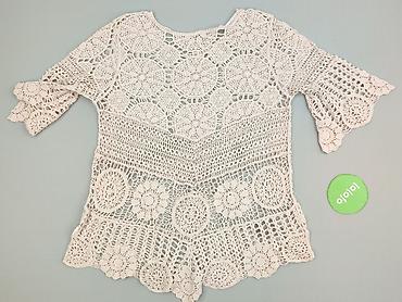 Biała, ażurowa bluzka damska Chelsea & Theodore, rozmiar L. - Krój: prosta bluzka z elastycznym, marszczonym dekoltem (możliwość noszenia na ramionach lub opuszczoną). - Rękaw: krótki, lekko zwiew...