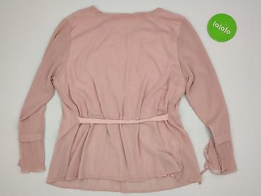 Bluzka damska z długim rękawem, rozmiar M. Kolor: jasny pudrowy róż. Dekolt w kształcie litery V. Dół wykończony tunelem ze sznurkiem do regulacji/ściągnięcia, co pozwala dopasować szerokość i dług...