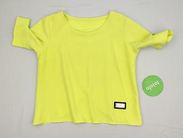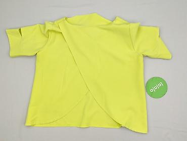 Bluzka damska, rozmiar M, w intensywnym neonowo‑żółtym kolorze. - Krój dopasowany, długość do bioder. - Dekolt zaokrąglony z delikatną, ozdobną lamówką. - Rękawy do łokcia. - Dzianina prążkowan...