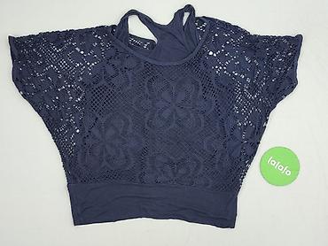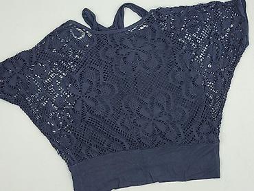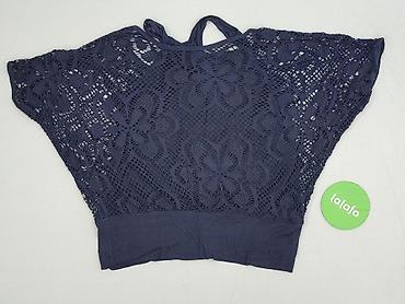 Bluzka damska BOULE, rozmiar 44. - Krótki rękaw - Dekolt z elastyczną gumką i troczkami z przodu (możliwość noszenia klasycznie lub lekko opuszczone na ramiona) - Granatowa baza z wyrazistym, kwia...