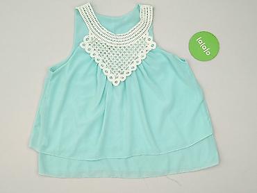 Bluzka damska Busem, rozmiar S - Krój: bez rękawów, luźna, prosta linia - Materiał: lekki, półprzezroczysty szyfon; tył jednolity w intensywnym błękicie, przód z nadrukiem - Wzór: dekoracyjny moty...