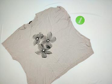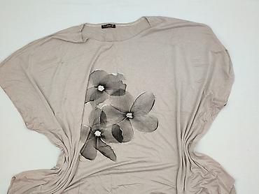 Bluzka damska z krótkim rękawem, rozmiar 50 - Krój: lekko pudełkowy, swobodny, z zaokrąglonym dekoltem - Wzór: kwiatowy, w odcieniach beżu, brązu i ecru; delikatny połysk i strukturalny splot tkan...