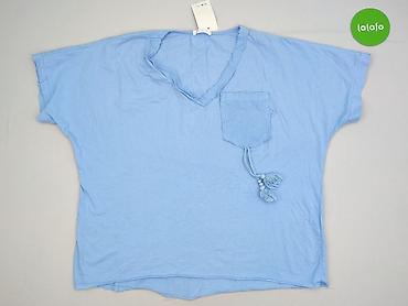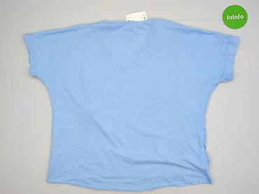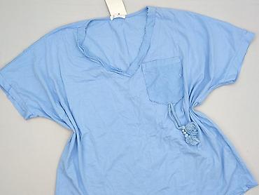 Bluzka damska oversize w kolorze niebieskim - Krój: luźny, lekko rozszerzany, z wykończeniem przypominającym podwójną listwę na dole; dekoracyjny, pionowy szew na plecach - Rękaw: krótki - Dekolt:...