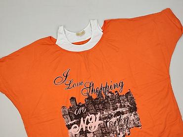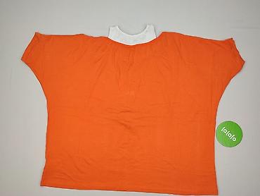 Pomarańczowa damska bluzka oversize - Krój: luźny, oversize, z obniżoną linią ramion i krótkim rękawem typu kimono - Dekolt: okrągły - Materiał: cienka, miękka dzianina bawełniana z domieszką elas...