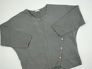 Szary damski longsleeve z mieszanych tkanin i aplikacją - Krój: luźny, z okrągłym dekoltem i długim rękawem - Kolor: odcienie szarości, przód łączony z dwóch materiałów (gładki i fakturowany) - De...
