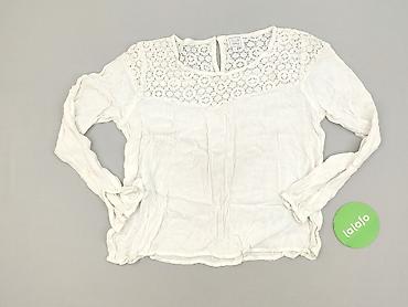 Biała bluzka damska z długim rękawem - Lekka, przewiewna tkanina o delikatnej, pionowej fakturze (miękko układający się materiał). - Ozdobne, poziome wstawki z koronki/ażuru z przodu i na obwodzie...Stan: