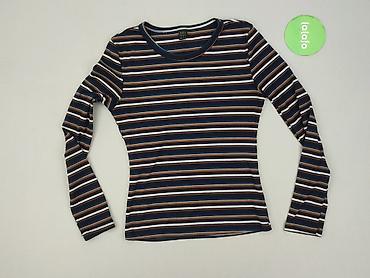 Bluzka damska z długim rękawem, prążkowana, w paski. - Fason: dopasowany, elastyczny materiał podkreślający sylwetkę - Rękaw: długi - Dekolt: okrągły, obszyty czarną lamówką - Wzór: poziome pasy w...