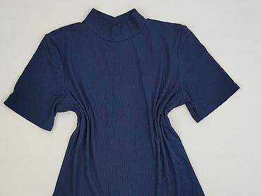 Damska bluzka z długim rękawem, granatowa - Krój: luźny, z subtelnymi zakładkami przy dekolcie - Dekolt: półokrągły - Rękawy: długie, zakończone gumką (delikatne bufki) - Dół: lekko zaokrąglony, z...