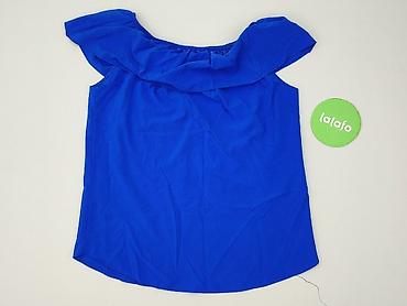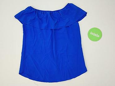Bluzka damska hiszpanka, rozmiar 40 - Fason: hiszpanka z odkrytymi ramionami, szeroka falbana przy dekolcie - Krój: lekko dopasowany, długość do bioder - Wzór: biało‑niebieski, kwiatowo‑roślinny -...
