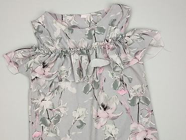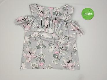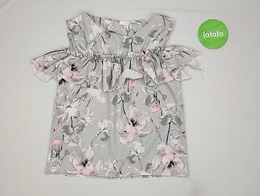 Bluzka damska z wyciętymi ramionami (cold shoulder) - Rozmiar: 36 (metka) - Kolor bazowy: jasny, pastelowy szaroniebieski - Wzór: kwiatowy – czerwone i białe kwiaty z granatowymi listkami - Krój: ...