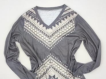 Bluzka damska z długim rękawem - Kolor: grafitowy melanż - Dekolt: w kształcie litery V - Krój: lekko luźny, dół delikatnie zaokrąglony - Materiał (wg metki): 75% poliester, 21% wiskoza, 4% elasta...Stan: