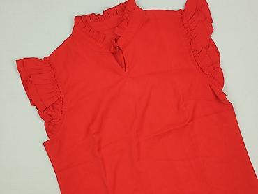 Bluzka damska bez rękawów, rozmiar L - Krój: lekko rozszerzany, luźny, z dekoltem w kształcie litery V i stójką - Wzór: drobny, nieregularny nadruk w białe motywy na czerwonym tle - Materiał: 100%...