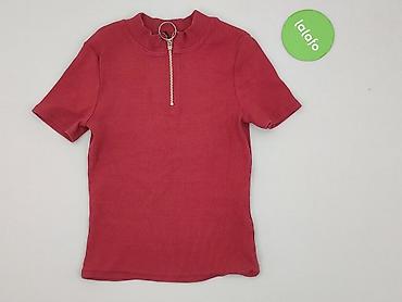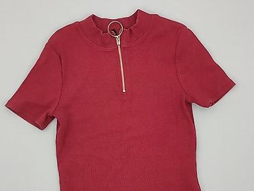Bordowa bluzka damska Fisherfield, rozmiar 36. - Fason: dopasowany, prążkowany materiał - Rękaw: krótki - Dekolt/stójka: półgolf ze złotym zamkiem błyskawicznym zakończonym ozdobnym kółkiem (możli...