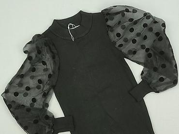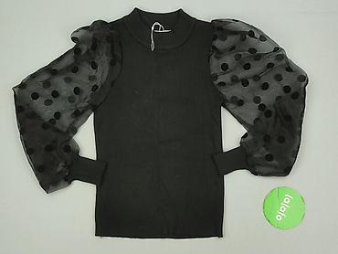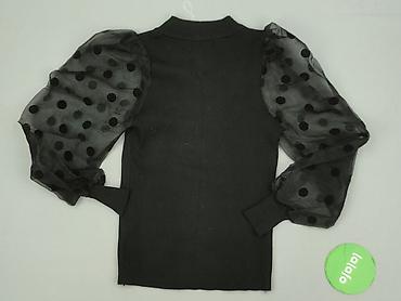 Czarny sweter/bluzka damska z efektownymi bufiastymi rękawami z tiulu w kropki.