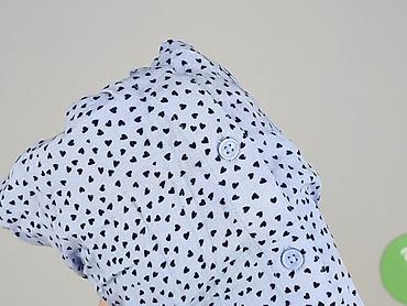 Damska koszula/bluzka z długim rękawem - Wzór: granatowe tło z drobnym, regularnym białym deseniem (mini serduszka/kropki), miejscami subtelne różowe akcenty - Krój: lekko taliowana, delikatnie za...