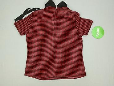 Bluzka damska w pepitkę XS - Rozmiar z metki: XS - Fason: prosta bluzka z krótkim rękawem - Kołnierzyk: klasyczny, zapinany z tyłu na guzik - Wzór: czarno-biała pepitka (houndstooth) - Materiał: 9...