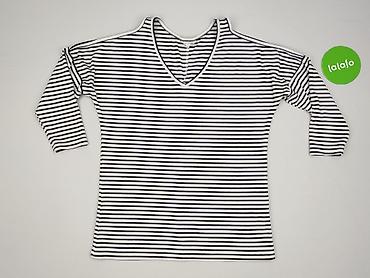 Bluzka damska w paski, rozmiar S - Krój: dopasowany, z dekoltem w serek; wycięcie na jedno ramię (asymetryczne ramię cold shoulder) - Rękaw: 3/4 - Wzór: poziome paski granatowo-białe - Dzianina pr...Stan: