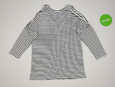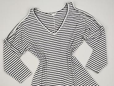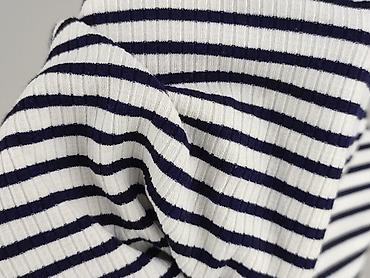 Bluzka damska w paski, rozmiar S - Krój: dopasowany, z dekoltem w serek; wycięcie na jedno ramię (asymetryczne ramię cold shoulder) - Rękaw: 3/4 - Wzór: poziome paski granatowo-białe - Dzianina pr...