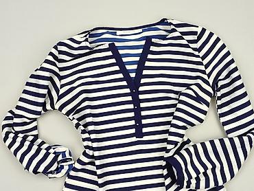 Damska bluzka w paski, długi rękaw - Krój: dopasowany, klasyczny T-shirt z okrągłym dekoltem - Wzór: drobne, poziome paski biało-granatowe (styl marynarski) - Rękawy: długie - Materiał: elastyczna...