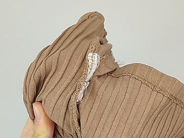 - Materiał: miękka, rozciągliwa dzianina prążkowana (skład metki nieczytelny, w dotyku mieszanka bawełny z elastanem/syntetykiem)
