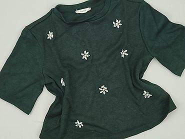 Bluzka damska BLUE, rozmiar 38. - Kolor: przygaszona zieleń/morski (dusty green) z kwiatowym nadrukiem w odcieniach różu, bieli, szarości i czerni. - Krój: luźniejszy, z gumką u dołu, dzięki czemu...