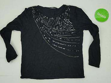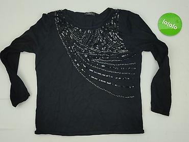 Czarna bluzka z długim rękawem, zdobiona cekinami - Klasyczny, półokrągły dekolt - Przód pokryty dekoracyjną siatką/koronką z cekinami ułożonymi w łukowate wzory, dającymi delikatny połysk - Tył g...