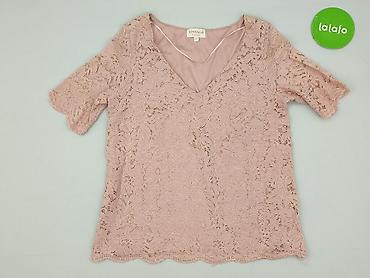 Bluzka damska z koronką, pudrowy róż - Krój: lekko dopasowany, prosty dół - Dekolt: zaokrąglony, z przodu i z tyłu wstawki z koronki - Rękawy: krótkie, w całości koronkowe, delikatnie rozszerzane ...