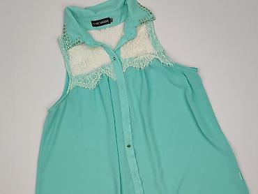 Bluzka damska bez rękawów Greenpoint - Rozmiar: 36 (z metki) - Kolor: bardzo jasny miętowy z białą, ażurową koronką na wierzchu - Krój: dopasowany, okrągły dekolt - Przód: koronkowy panel z haftow...