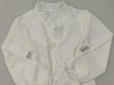 Bluzka damska SHEIN, rozmiar M - Kolor: biały - Krój: lekko luźny, zapinana na guziki z przodu - Rękawy: długie, bufiaste z marszczeniem przy mankiecie - Kołnierz: stójka z delikatną falbanką - Wz...