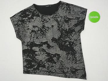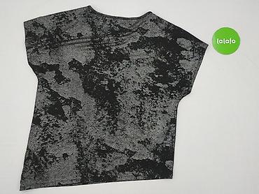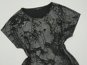 Bluzka damska RESERVED, rozmiar M. - Fason: dopasowany, z krótkim rękawem i okrągłym dekoltem - Wzór/materiał: czarna tkanina z metalicznym, drobno nakrapianym połyskiem - Skład: 98% poliester, 2%...