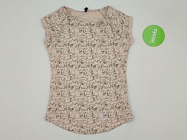 Bluzka damska House Brand, rozmiar S - Krótki top z krótkim rękawem - Kolor: ecru/śmietankowy w drobny, różany nadruk - Ażurowy dzianinowy wzór w serduszka na całej powierzchni - Dekolt okrągły - ...