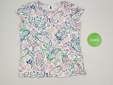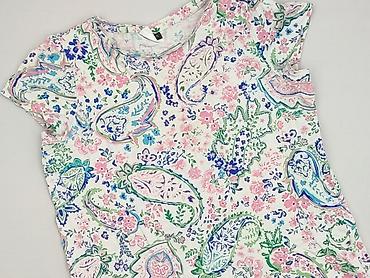 Bluzka damska z krótkim rękawem, rozmiar S. - Fason: luźniejszy, z lekkim marszczeniem/zakładkami z przodu pod dekoltem - Dekolt: zaokrąglony - Długość rękawa: krótki - Wzór: abstrakcyjny, wieloba...