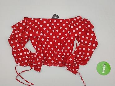 Czerwona bluzka w białe kropki - Krój: kopertowy dekolt w kształcie V z falbanami na ramionach - Talia: szeroki pasek z elastycznym marszczeniem (smocking), dopasowujący się do sylwetki - Zapięcie...