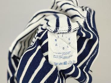 Bluzka damska w paski - Fason: luźny, z lekko obniżoną linią ramion - Dekolt: w serek z przodu, okrągły z tyłu - Rękaw: do łokcia/3/4 - Wzór: pionowe pasy w kolorze granatowym i białym - Materiał:...