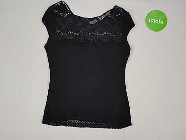 Bluzka damska F&F, rozmiar EU 36 (UK 8). - Kolor: czarny - Krój: prosty, z okrągłym dekoltem - Rękawy: krótkie z siateczki - Góra bluzki: transparentna siateczka z aplikacją/haftem w kwiaty...