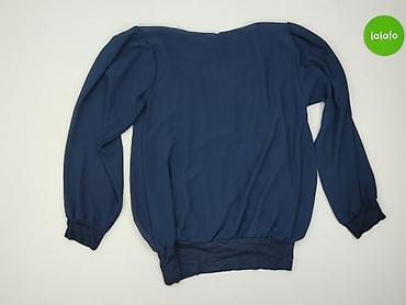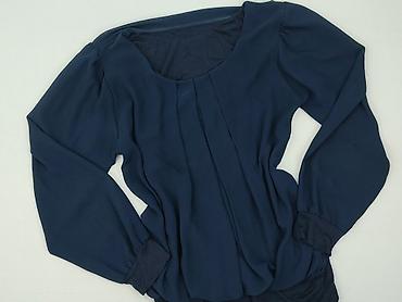 Damska bluzka z długim rękawem, granatowa - Krój: luźny, z subtelnymi zakładkami przy dekolcie - Dekolt: półokrągły - Rękawy: długie, zakończone gumką (delikatne bufki) - Dół: lekko zaokrąglony, z...