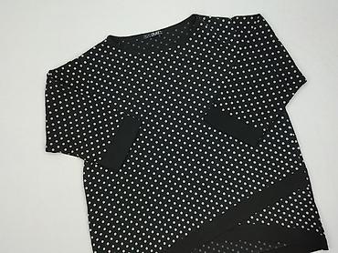 Bluzka damska QUIOSQUE, rozmiar 34. - Kolor: czarny z wstawkami w białe kropki na karczku i krótkich rękawkach - Fason: dopasowana, z okrągłym dekoltem - Dekor: aplikacja kwiatka/przeszywana rozet...